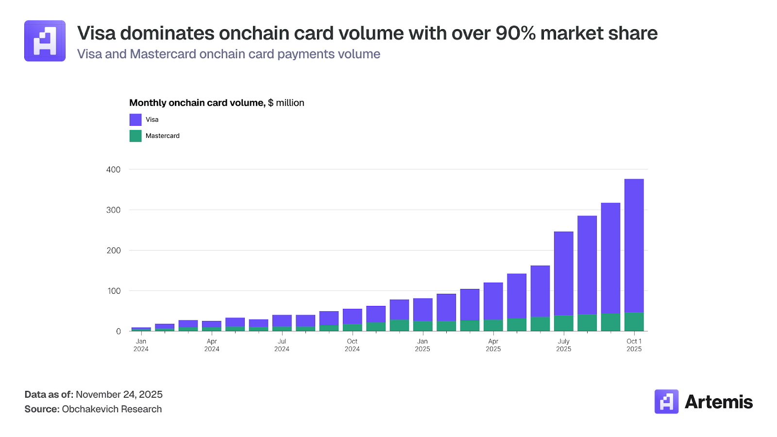 Rather than replacing traditional card networks at checkout, stablecoins are increasingly powering behind-the-scenes settlement, combining global acceptance with faster, more flexible value movement. The trend is being reinforced by major infrastructure players like Rain, which recently raised $250 million to scale its stablecoin card platform, and Visa, which reported stablecoin settlement volumes reaching a $4.5 billion annualized run rate driven largely by crypto card providers.
